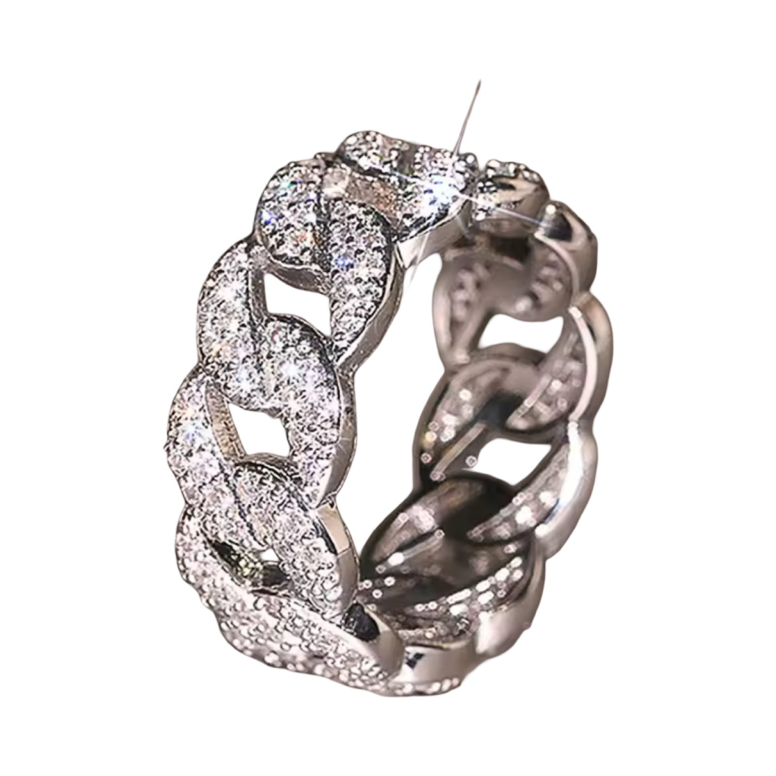 Sterling Silver and Micro Pave setting Cuban Link Pinky Ring.